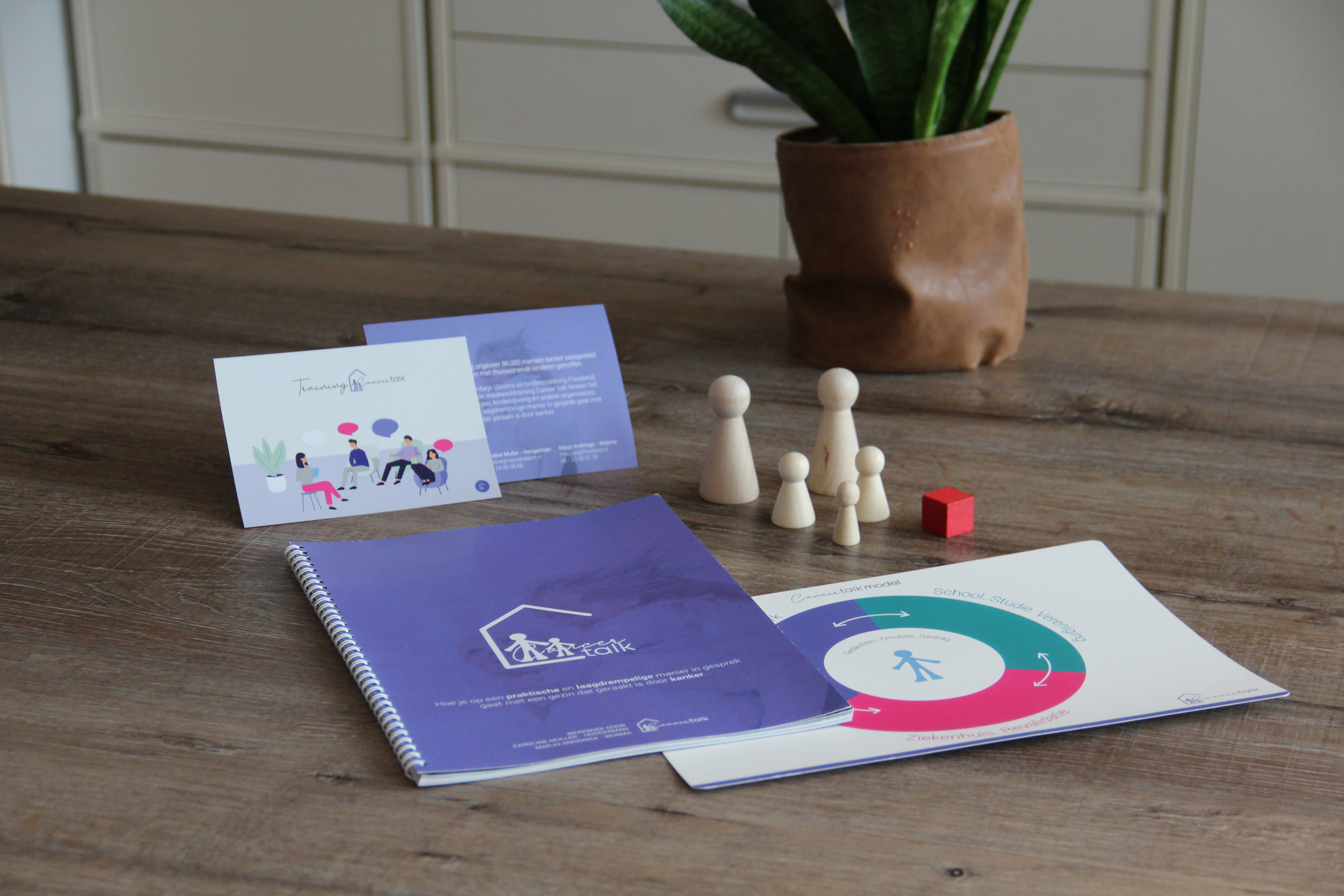 Alle kennis en ervaring die de initiatiefnemers van Cancertalk tijdens hun loopbaan hebben opgedaan zijn gebundeld tot een geaccrediteerde training (27,5 punten). Caroline: ‘De individuele tweedaagse is bedoeld voor professionals die regelmatig aan tafel zitten bij gezinnen die geraakt zijn door kanker of een andere levensbedreigende ziekte. Denk aan een (kinder)coach, therapeut of praktijkondersteuner.’ Aan de hand van verschillende casussen leren zij hoe ze op een laagdrempelige manier in gesprek kunnen gaan met een gezin, zodat behoeften en hulpvragen van ieder zichtbaar worden. Marjo: ‘Dat doen we met behulp van het werkboek,, werkvormen en materialen die meteen de volgende dag in te zetten zijn. Ook het sociale netwerk en zelfzorg komen ruim aan bod. Na de tweedaagse staat er nog een feedbackgesprek gepland waar de cursisten hun vragen kunnen stellen of om extra advies kunnen vragen.’