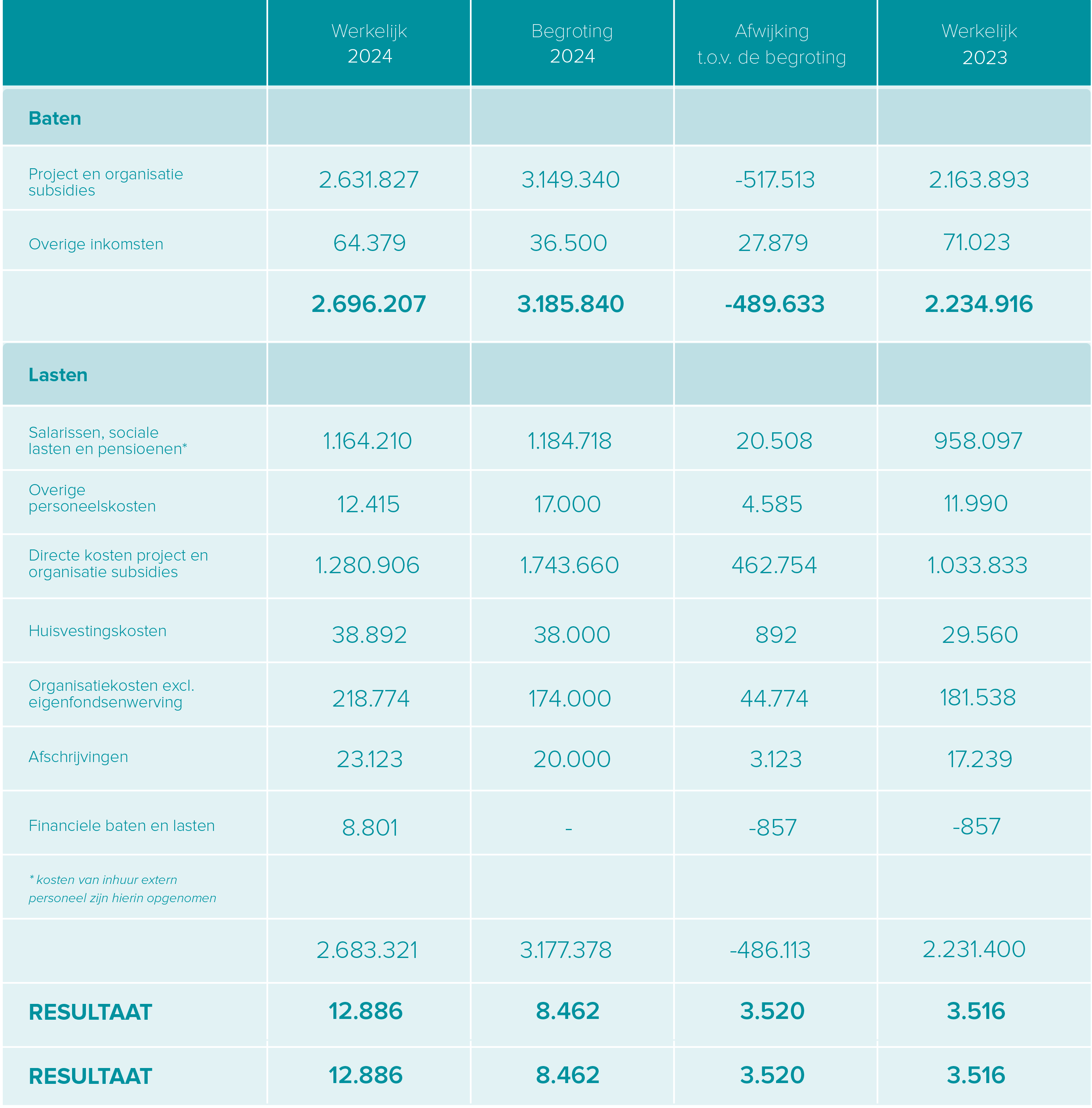 Het financiële overzicht hieronder laat zien hoe het Kenniscentrum Kinderpalliatieve Zorg in 2024 middelen heeft ingezet om impact te maken – van scholing tot communicatie, van innovatie tot ondersteuning in het veld.