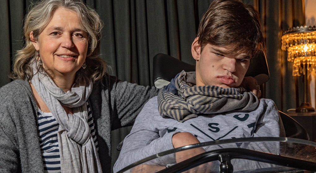 Sarike’s zoon Bram is bijna 25 jaar. Toen hij 6 jaar was, werd gezegd dat de familie beter afscheid van hem kon nemen. Hij zou niet oud worden. ‘Mijn man en ik hebben hem voornamelijk thuis verzorgd. En dat is niet ongewoon: een steeds groter deel van de kinderen met een ZEVMB of andere complexe zorgvragen, wonen thuis. In een instelling is het moeilijk om voldoende bezetting te realiseren op deze groepen, en ze werkelijk het leven te laten ervaren. Ook is het vaak niet mogelijk de dagelijkse medische zorg te bieden die wel nodig is. Hulp en zorg thuis voor Bram is moeilijk te vinden, en in het ziekenhuis schrikken zorgmedewerkers als ze hem zien.’ Daarom maakte Sarike een eigen campagneposter ‘Ongeneeslijk. Niet uitbehandeld.’ met een foto van Bram, en plaatste die op LinkedIn. ‘Want ook voor hem is geen behandeling. Dat was mijn doel met de poster. Een heel gezin wordt niet gezien.’