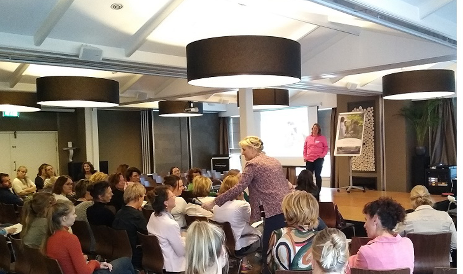 Kinderverpleegkundige Mirjam Zeebregts, initiator van het opzetten van MKS in en rond het Amphia in Breda, spoorde de vele collega’s in de zaal aan om het voortouw te nemen. “Toon verpleegkundig leiderschap. Wees niet bang, vertrouw op je expertise als verpleegkundige en op je ervaring. En begin volgende week maandag gewoon.”