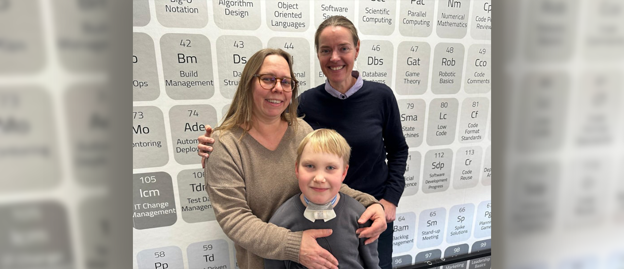 ‘Ons derde kind, Lunde (8), leek bij de geboorte gezond, maar bleek al snel ernstige ademhalingsproblemen te hebben. Een aangeboren afwijking, een stenose onder zijn stembanden, maakte het noodzakelijk om een tracheacanule te plaatsen. Dit was geen tijdelijke oplossing; de canule zit nu al meer dan zeven jaar. Elk jaar proberen artsen de canule te verwijderen, maar tot nu toe blijft deze nog nodig. We hopen dat er een moment komt dat Lunde’s luchtpijp sterk genoeg is om zelfstandig te ademen.'