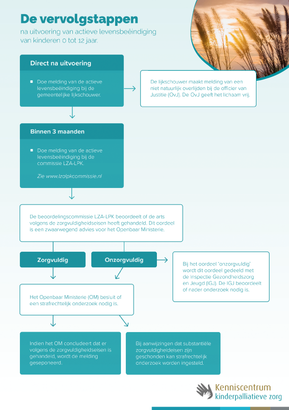 Artsen die actieve levensbeëindiging uitvoeren bij kinderen moeten hier binnen 3 maanden melding van doen. Voor informatie over de meldingsprocedure van actieve levensbeëindiging kun je kijken op de site van de beoordelingscommissie LZA/LP&K.